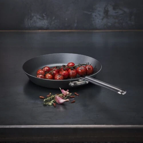 This 26cm Black Iron Carbon Steel Fry Pan is made from heavy 3mm gauge material for optimum performance. It will stand very high heat and works on all cooktop genres, including induction. Proven functional design that includes long handle with stainless steel rivets and is perfect for searing and brazing. It is pre-seasoned for better corrosion resistance with vegetable oil.